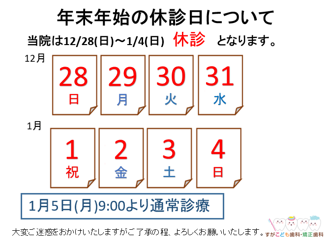 年末年始の休診日のご案内